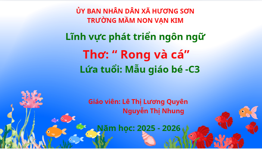 Lượt xem:0 Bài thơ: Rong và cá - Lớp C3 Chia s? Tải về Thông tin tài liệu Bài thơ: Rong và cá - Lớp C3