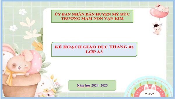 Lượt xem:104 Kế hoạch giáo dục tháng 02 lớp A3 Chia s? Tải về Thông tin tài liệu Kế hoạch giáo dục tháng 02 lớp A3