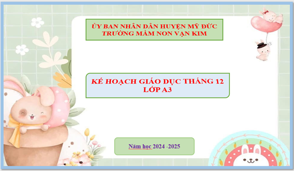 Lượt xem:101 Kế hoạch giáo dục tháng 12 lớp A3 Chia s? Tải về Thông tin tài liệu Kế hoạch giáo dục tháng 12 lớp A3