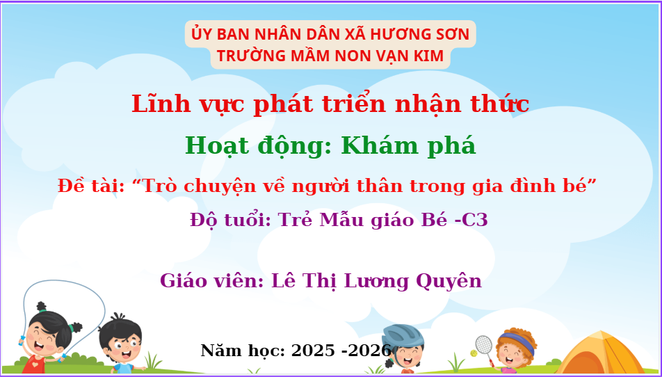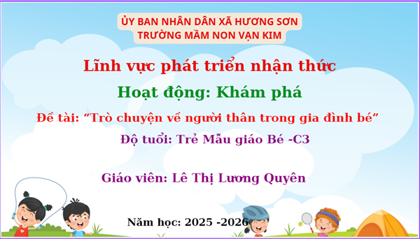 Lượt xem:0 Khám phá người thân trong gia đình bé- lớp C3 Chia s? Tải về Thông tin tài liệu Khám phá người thân trong gia đình bé- lớp C3