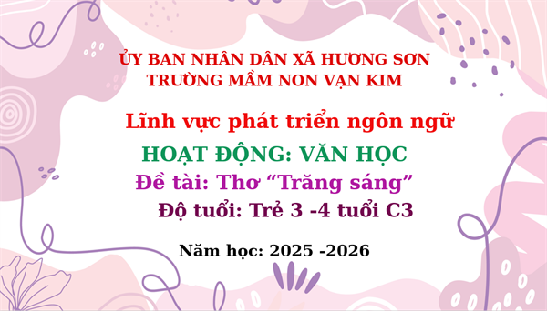 Lượt xem:31 Lĩnh vực phát triển ngôn ngữ: Đề tài -Thơ " Trăng sáng" lớp C3 Chia s? Tải về Thông tin tài liệu Lĩnh vực phát triển ngôn ngữ: Đề tài -Thơ " Trăng sáng" lớp C3