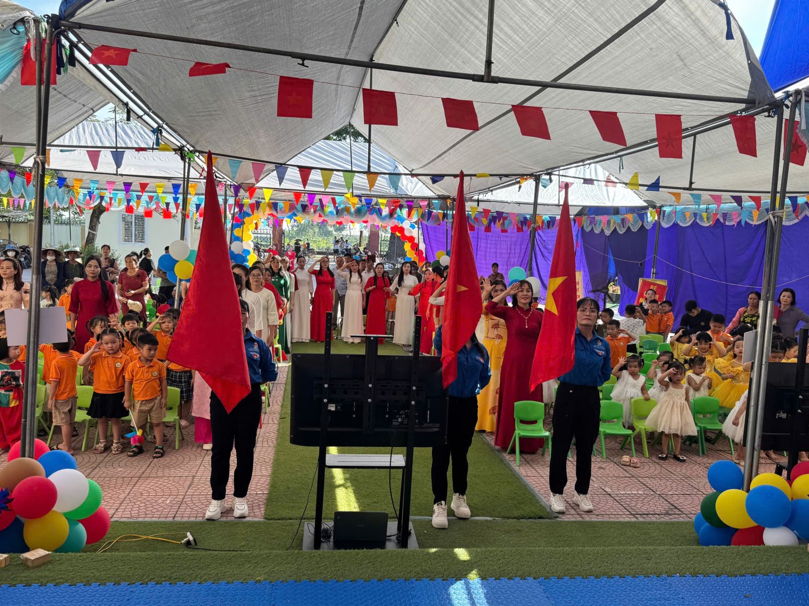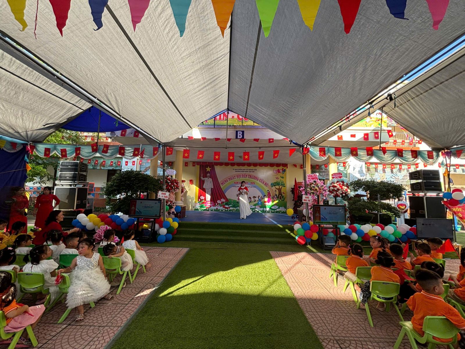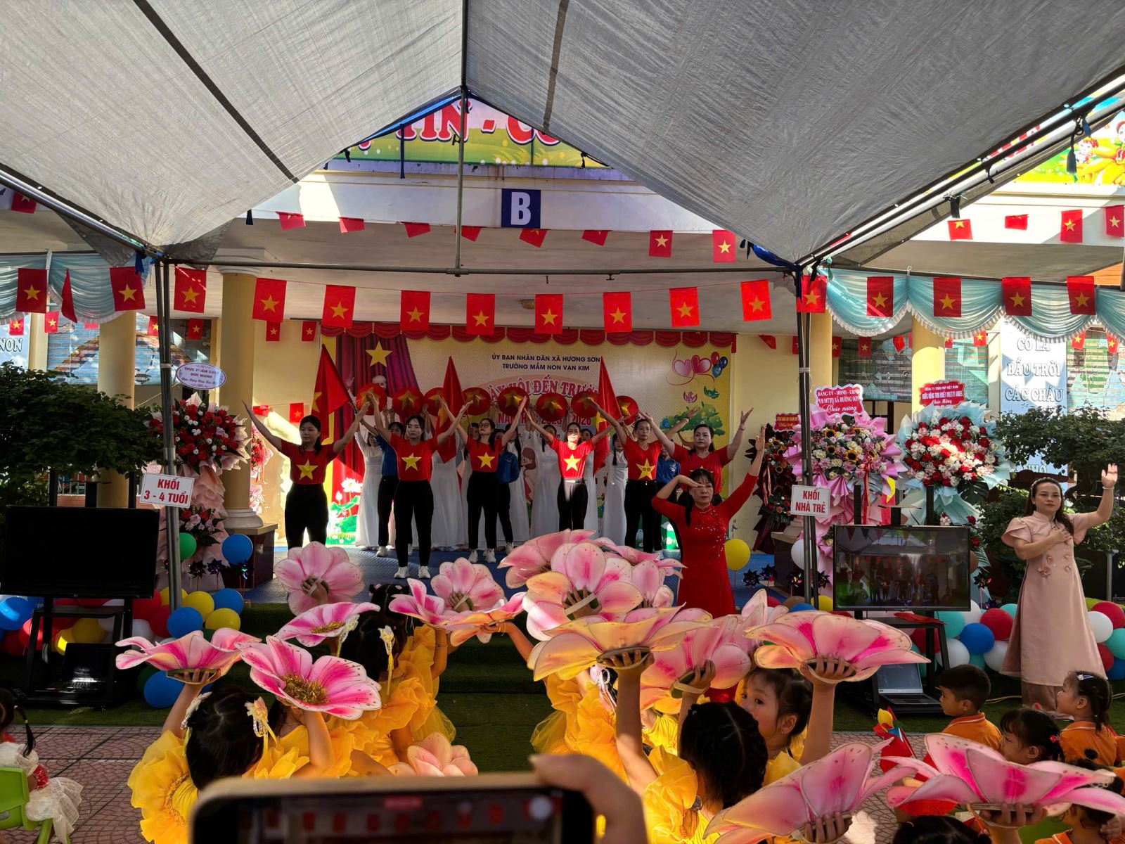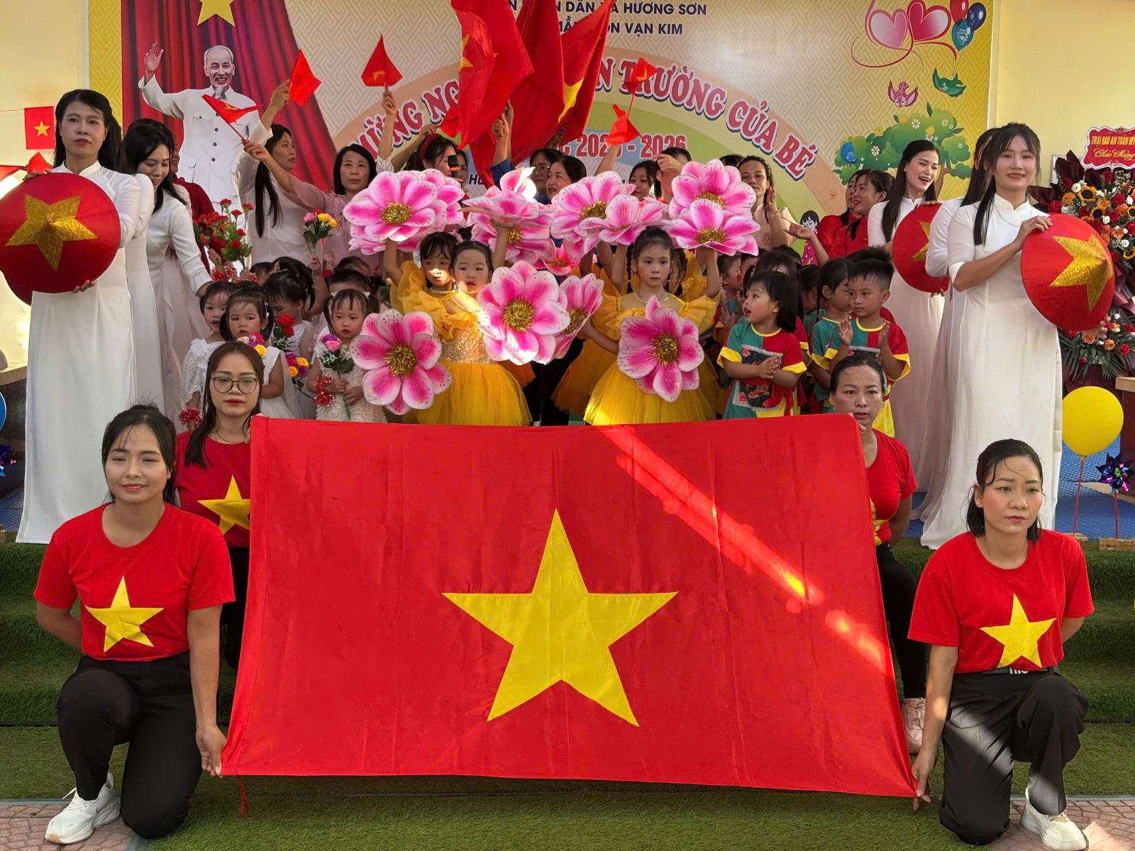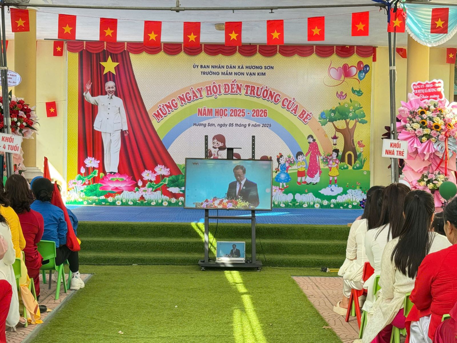 Lượt xem:54 Ngày khai giảng năm học mới 2025-2026 Chia s? Hòa chung vào không khí ngày khai trường cùng học sinh cả nước chào mừng năm học mới 2025 - 2026, cô và trò trường mầm non Vạn Kim long trọng tổ chức lễ khai giảng đón năm học mới với sự quyết tâm, lòng yêu nghề mến trẻ để có một năm học thành công, các con chăm ngoan, khoẻ mạnh và tạo dựng một ngôi trường thân thiện phát triển. Đến dự buổi Lễ có sự hiện diện của các Đ/c lãnh đạo địa phương, cùng toàn thể Cán bộ, giáo viên, nhân viên và phụ huynh học sinh. Và đặc biệt là sự có mặt của hơn 300 gương mặt hồn nhiên, xinh tươi của các bé học sinh toàn trường. Nhà trường vui mừng được lắng nghe những ý kiến chỉ đạo của đại diện lãnh đạo xã và được đón nhận các bó hoa tươi thắm của các vị đại biểu, đó như một sự động viên dành cho cô và trò trường Mầm non Vạn Kim sẽ cố gắng nỗ lực hơn nữa trong năm học tới. Tại buổi lễ Cô Nguyễn Thị Thám - Hiệu truởng nhà trường đã gửi đến cho các cháu những lời chúc, lời chào đón hân hoan, gửi tới sự cảm ơn của lãnh đạo cấp trên, và những lời chúc, lời động viên tới toàn thể cán bộ GVNV trong nhà trường, hưa hẹn một năm học mới sẽ có nhiều kết quả tốt trong năm học 2025-2026. Tải về Thông tin tài liệu Ngày khai giảng năm học mới 2025-2026